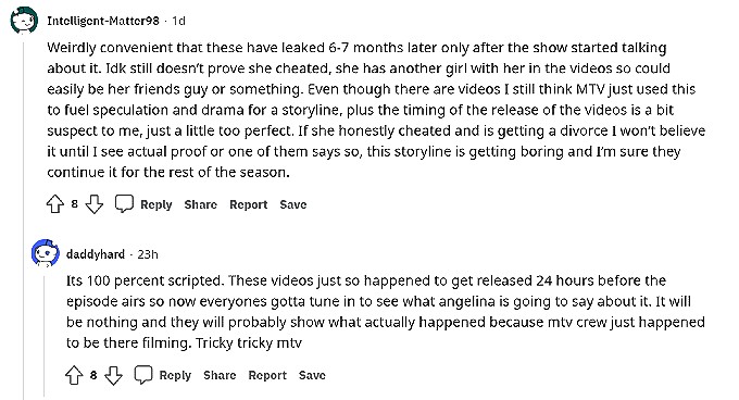 The Jersey Shore storyline regarding the footage was inserted into the series this season to supplement the marital strife Angelina and her husband have experienced over the past several months. This footage was shared by a Reddit user on the thread Everything Jersey Shore where fans of the show discuss storylines, share gossip and talk about their favorite moments.