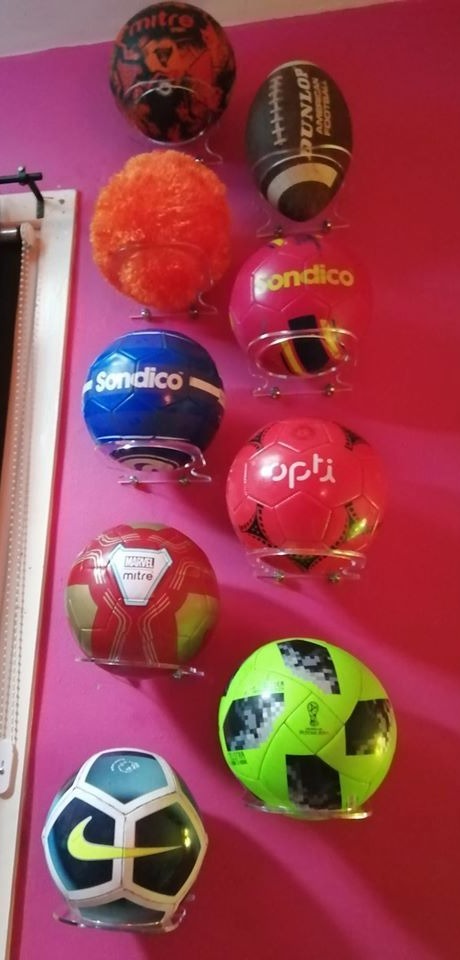 After being inspired by seeing something similar online, she got wall-mounted ball brackets made up so she can stack up her son’s footballs vertically.